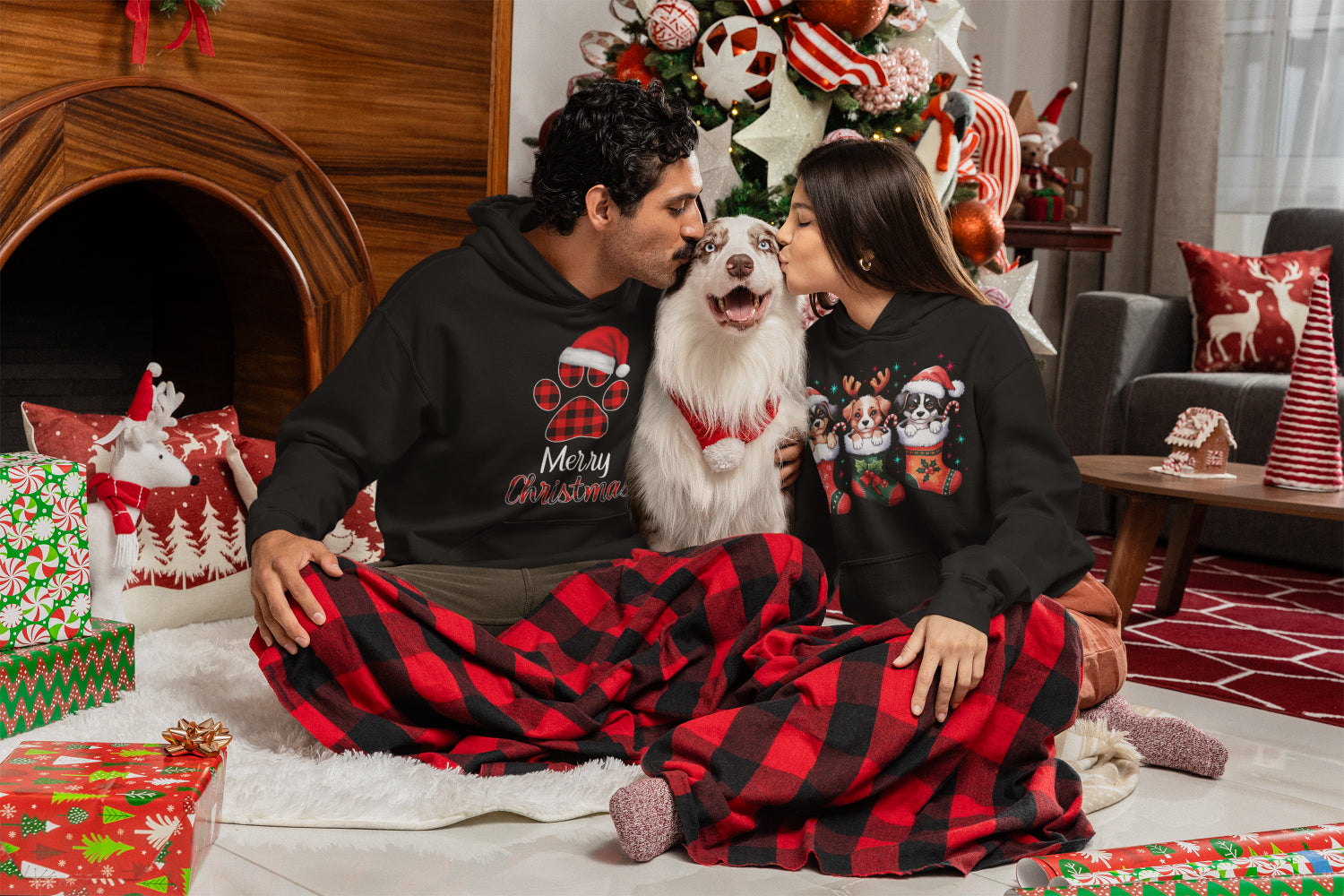 Paw Print Merry Christmas Ugly Sweatshirt - Fleece-lined