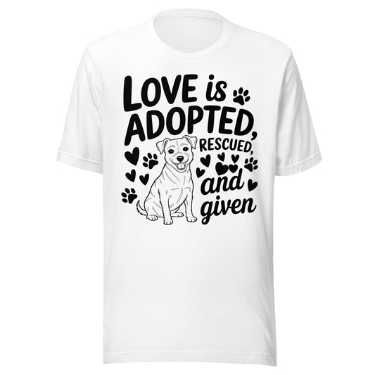 Love Is Adopted, Rescued and Given T-Shirt - Dog Rescue Shirt for Animal Lovers