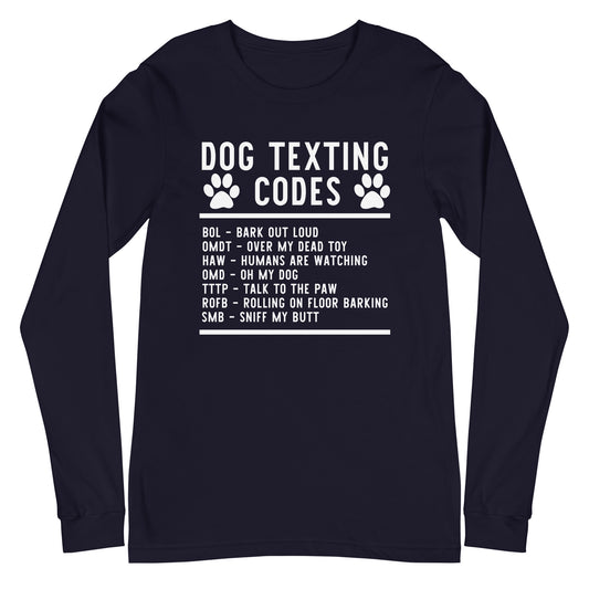 Dog Texting Codes Unisex Long Sleeve Tee