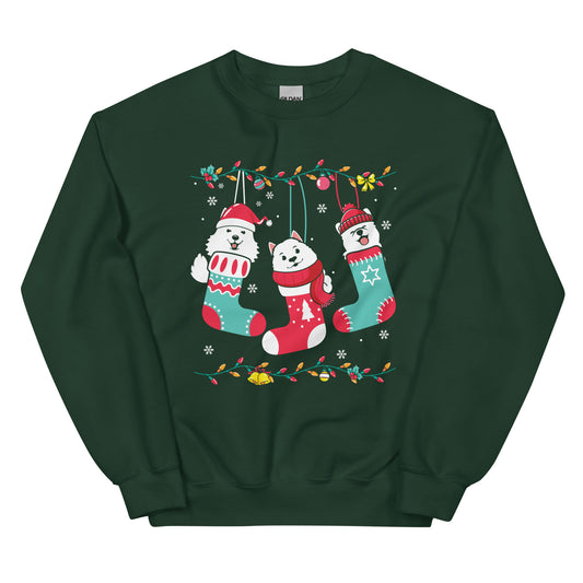 Dogs Having Fun in Christmas Stockings Socks Ugly Christmas Sweatshirt