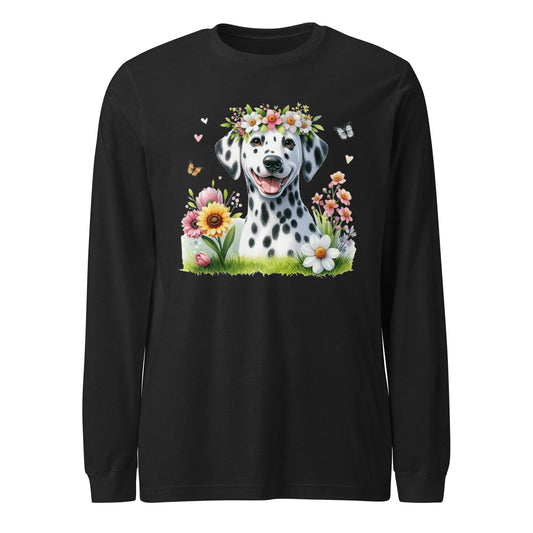Happy Dalmatian Dog Spring Vibes Dog Mom Long Sleeve Tee