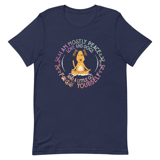 I Am Mostly Peace Love and Dogs Yoga T-Shirt