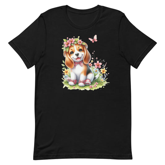 Beagle Dog in Spring Garden T-Shirt for Dog Mom