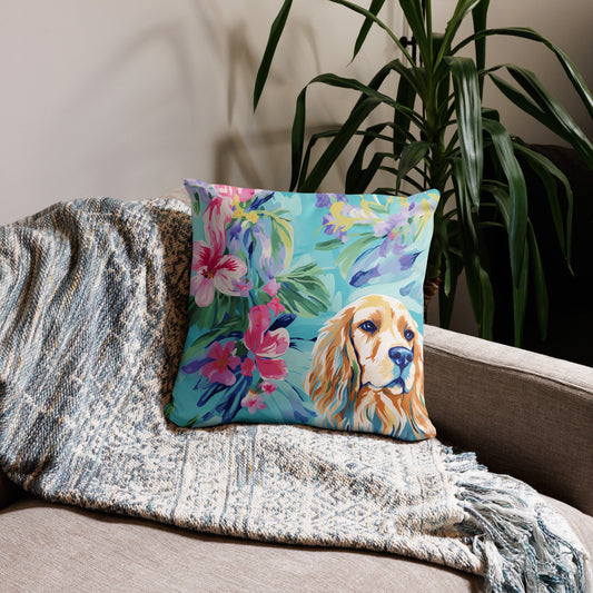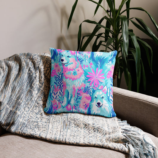 Preppy Dog Floral Pattern Basic Throw Pillow
