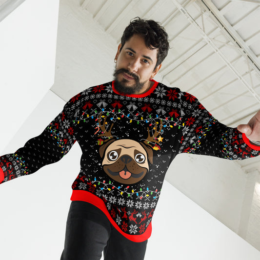 Pug Reindeer Ugly Christmas Sweatshirt