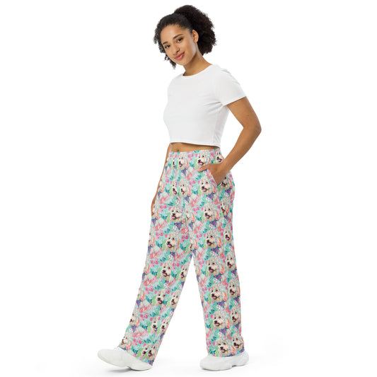 Preppy Dog Floral Unisex wide-leg pants
