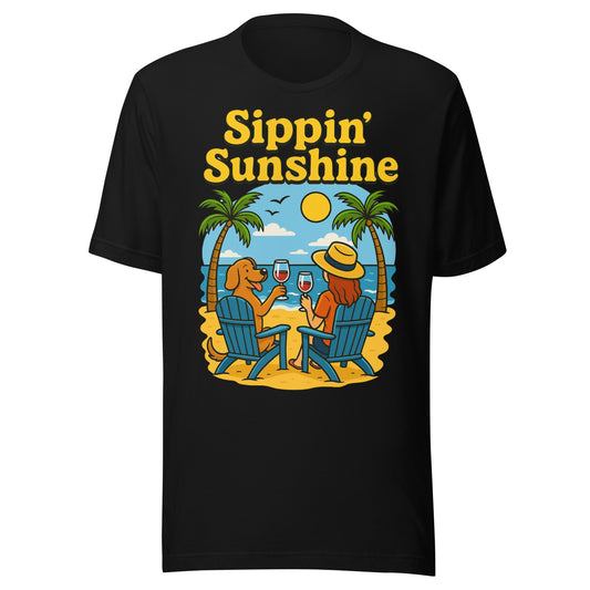 Sippin’ Sunshine Beach Dog & Wine T-Shirt