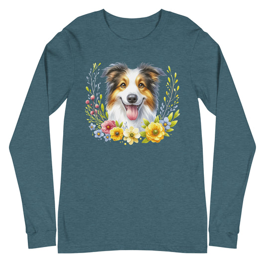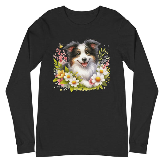 Border Collie Dog in Spring Floral Long Sleeve Tee for Dog Mom