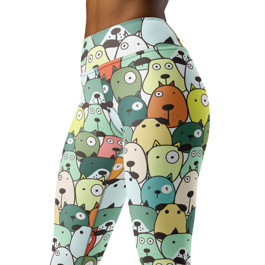 Winking Dog Face Patter Yoga Leggings for Dog Lovers