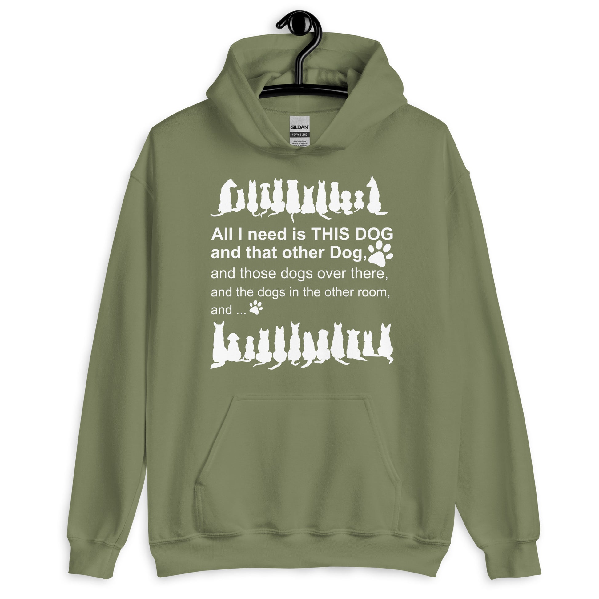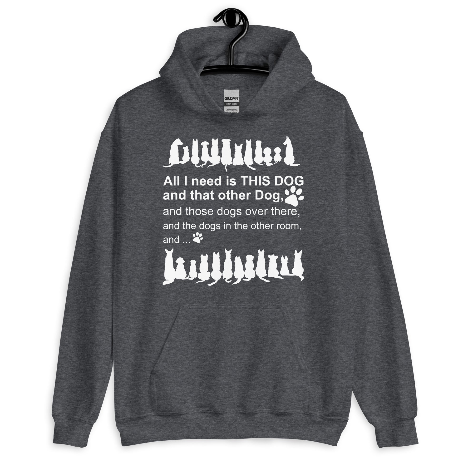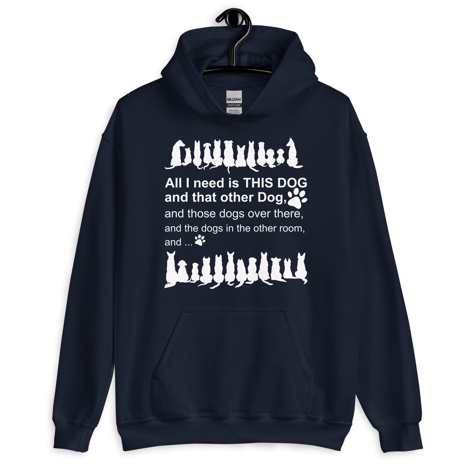 All I need is THIS DOG and that other Dog, and those dogs over there, and the dogs in the other room, and... cool and comfy funny hoodie for dog lovers. Show off you are a dogaholic person through our All I need is this dog and that dog hoodie.