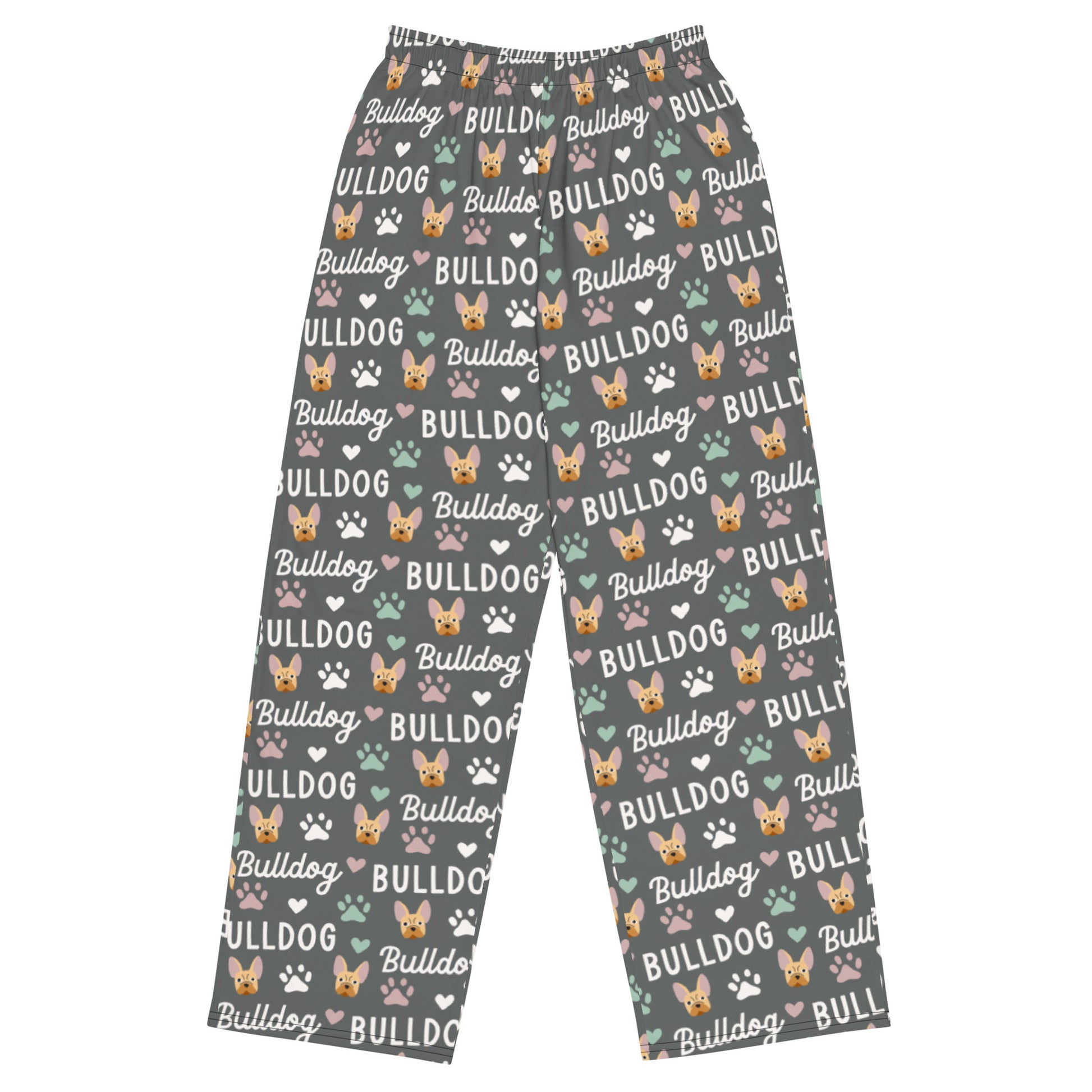 Bulldog Lovers Super Soft Wide-leg Pajama/Sweats Bottoms are printed in USA