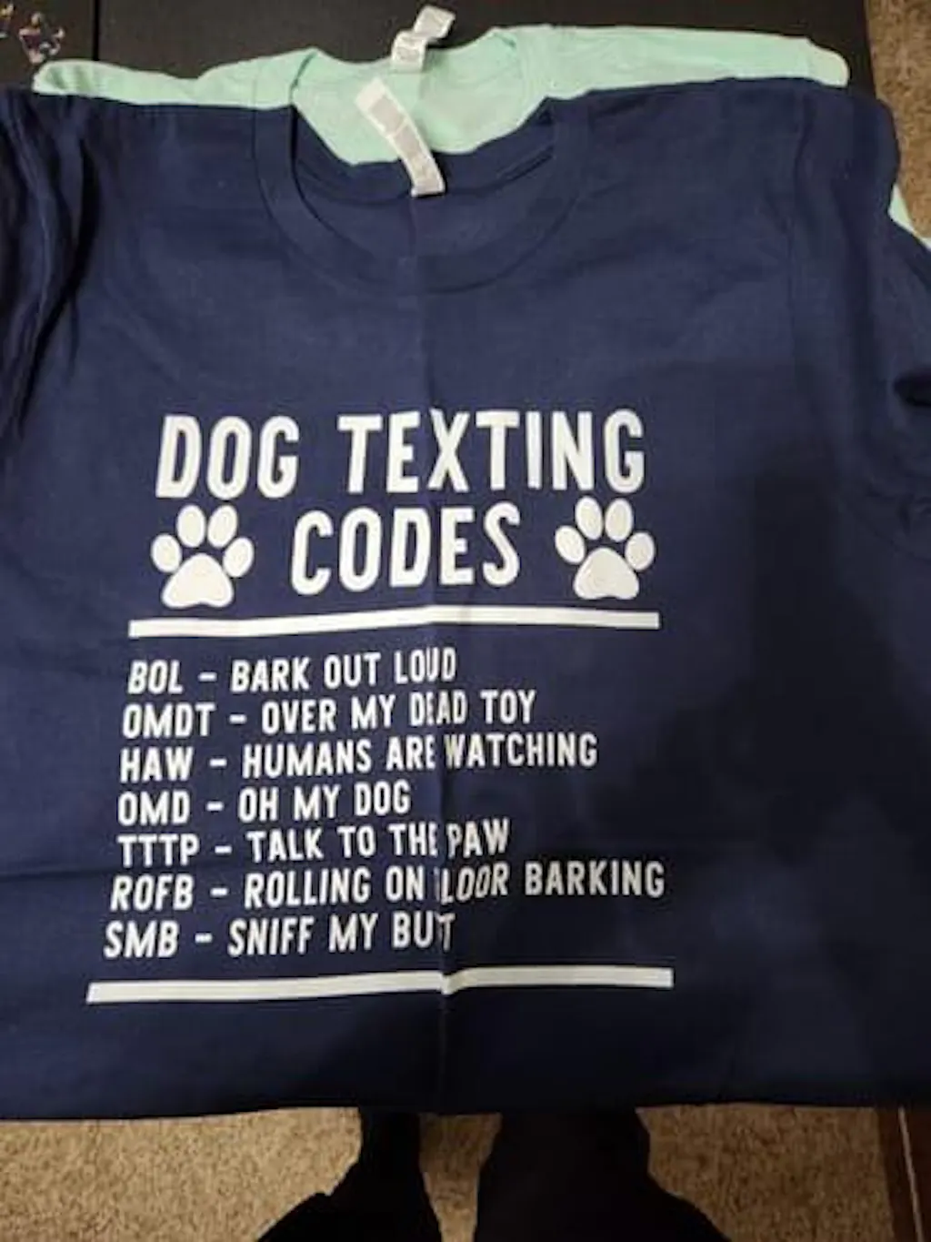 Dog Texting Codes Unisex t-shirts are printed in USA
