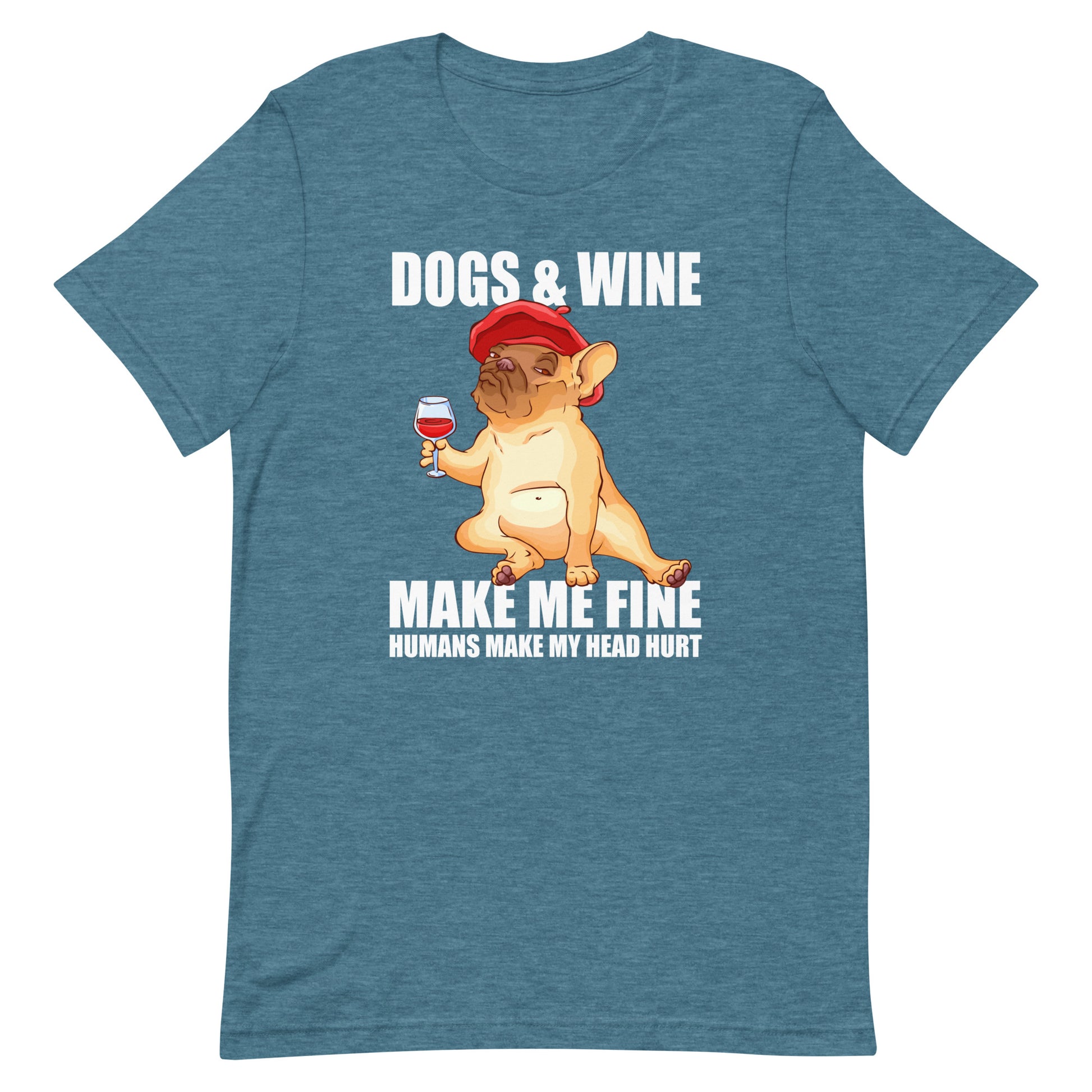 Dogs and Wine Make Me Fine Humans Make My Head Hurt T-Shirts are printed in USA