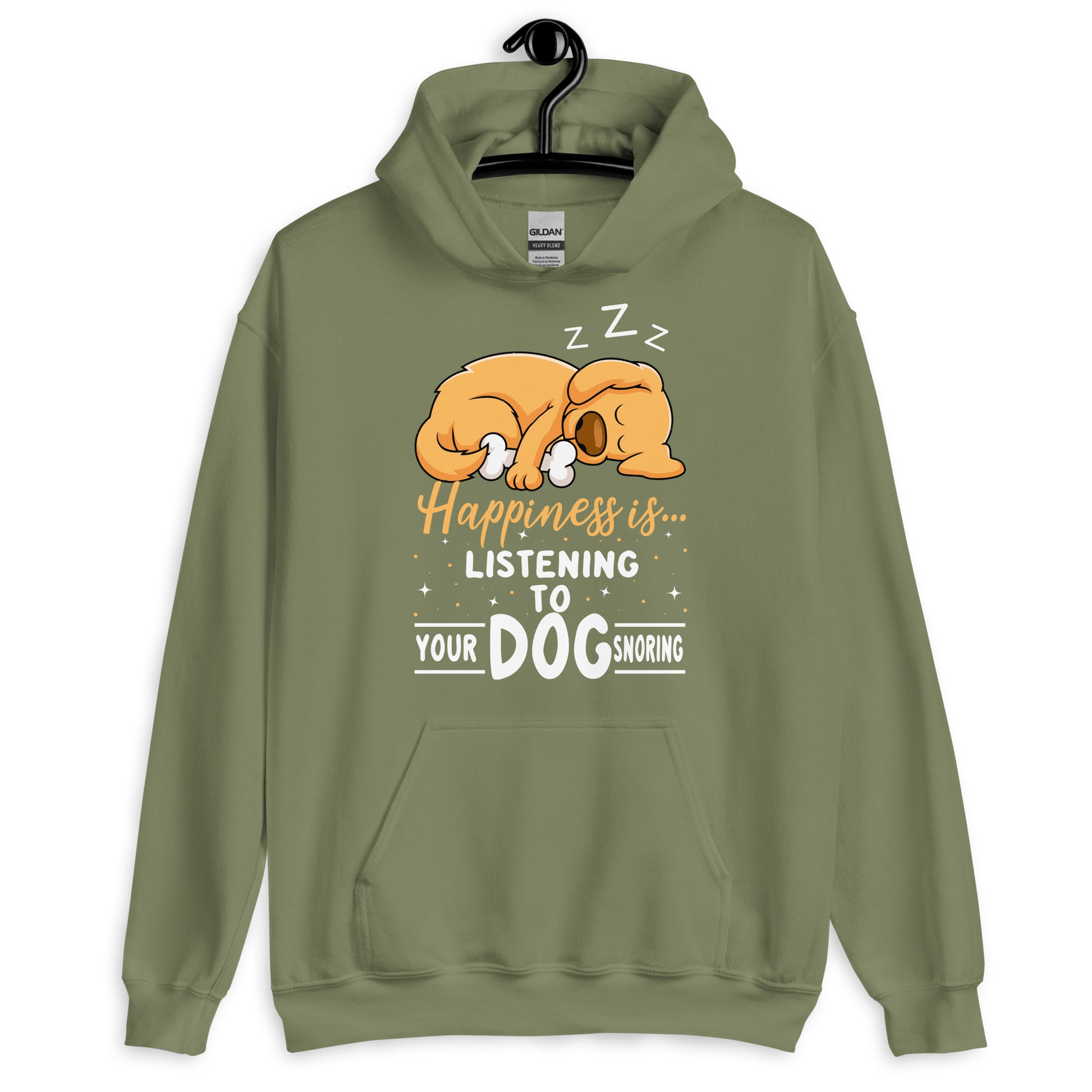 Happiness is Listening to Your Dog Snoring Hoodies are printed in USA