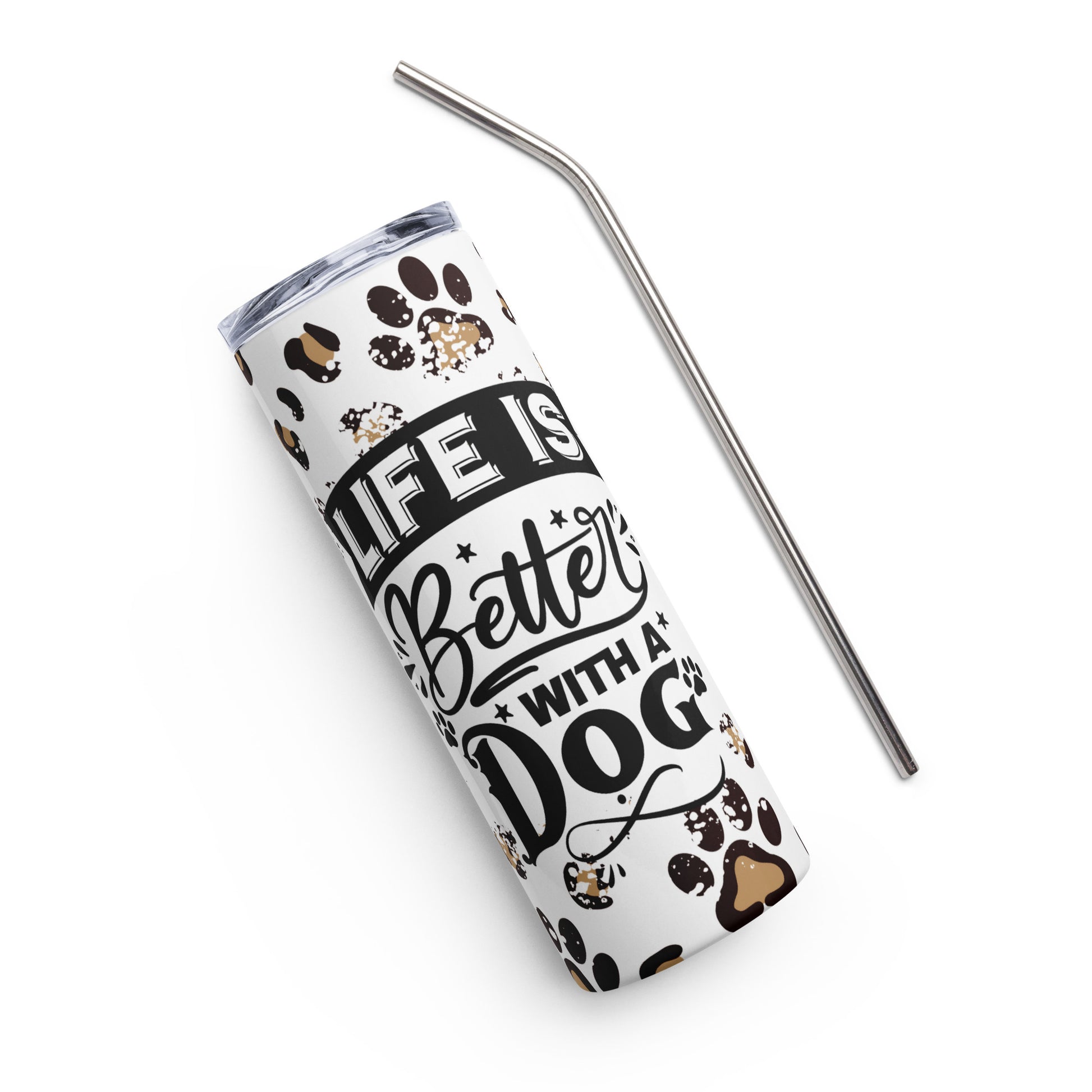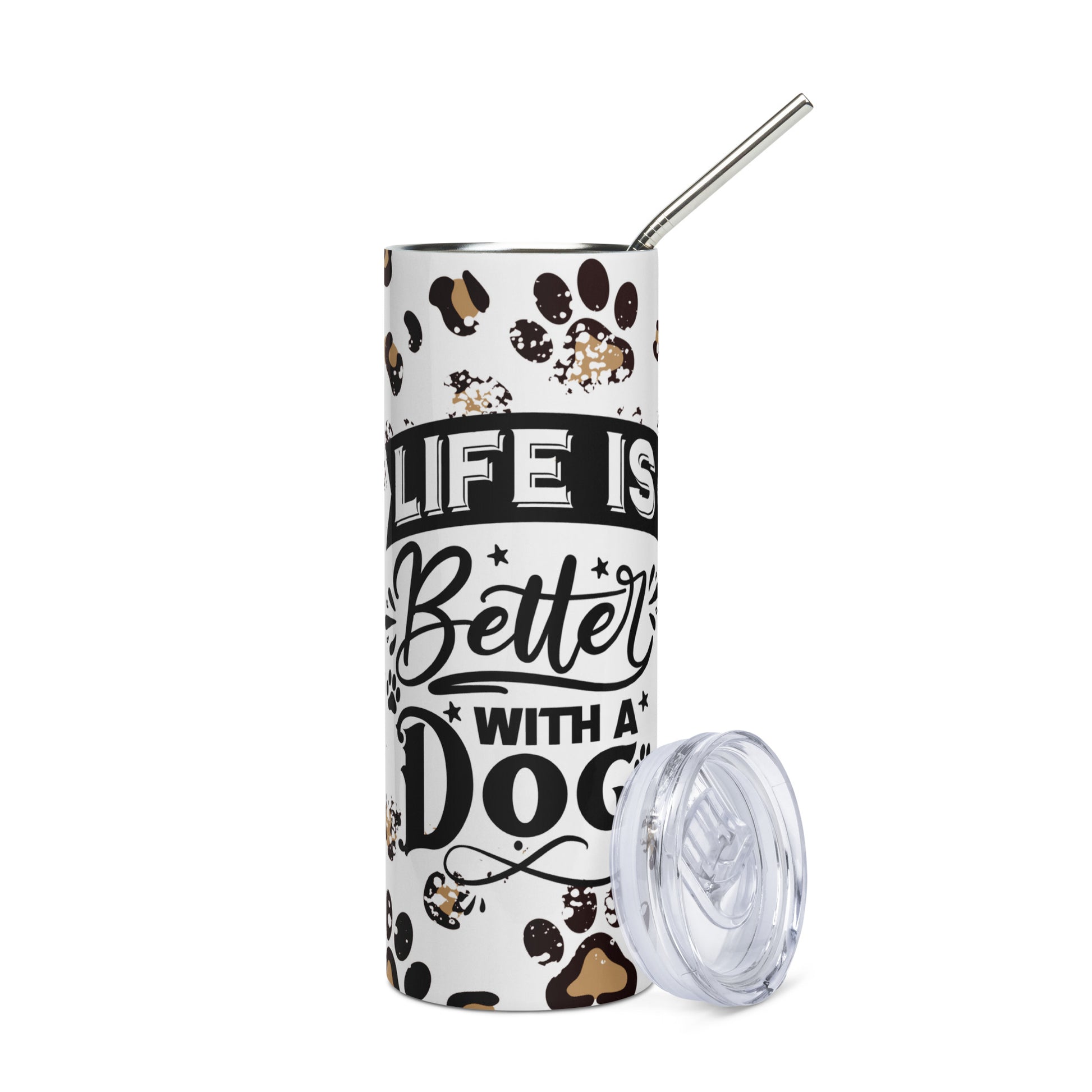 Life is Better with a Dog Stainless steel Tumblers are printed in USA
