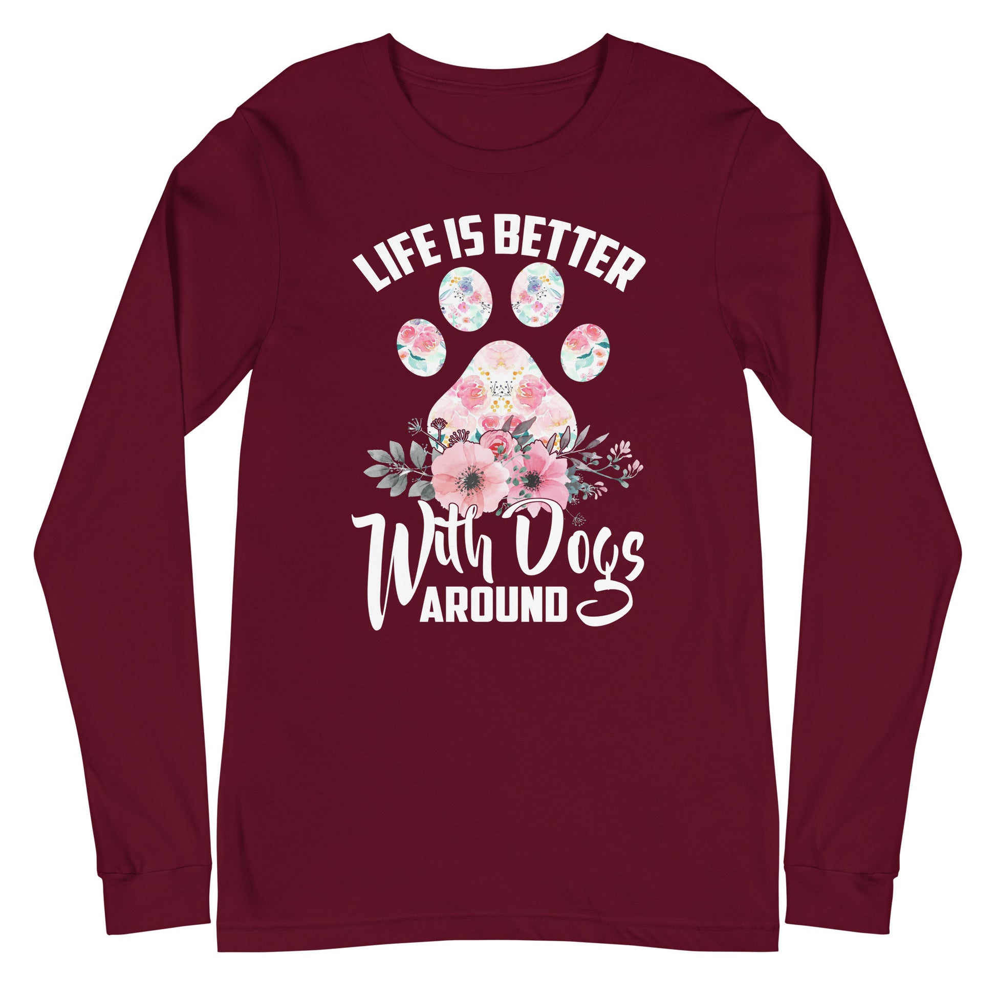 Life is Better with Dogs Around Unisex Long Sleeve Tee