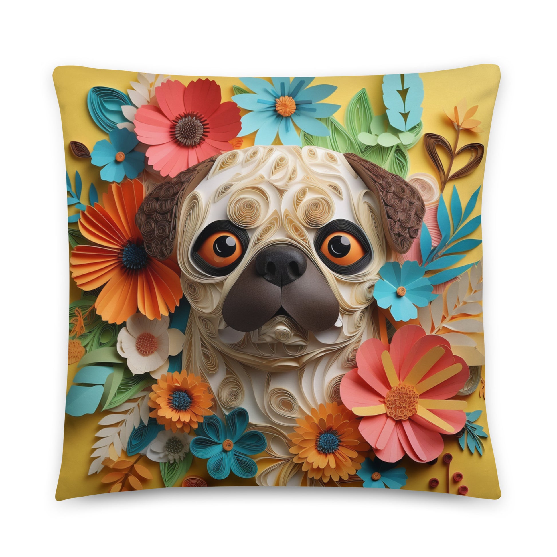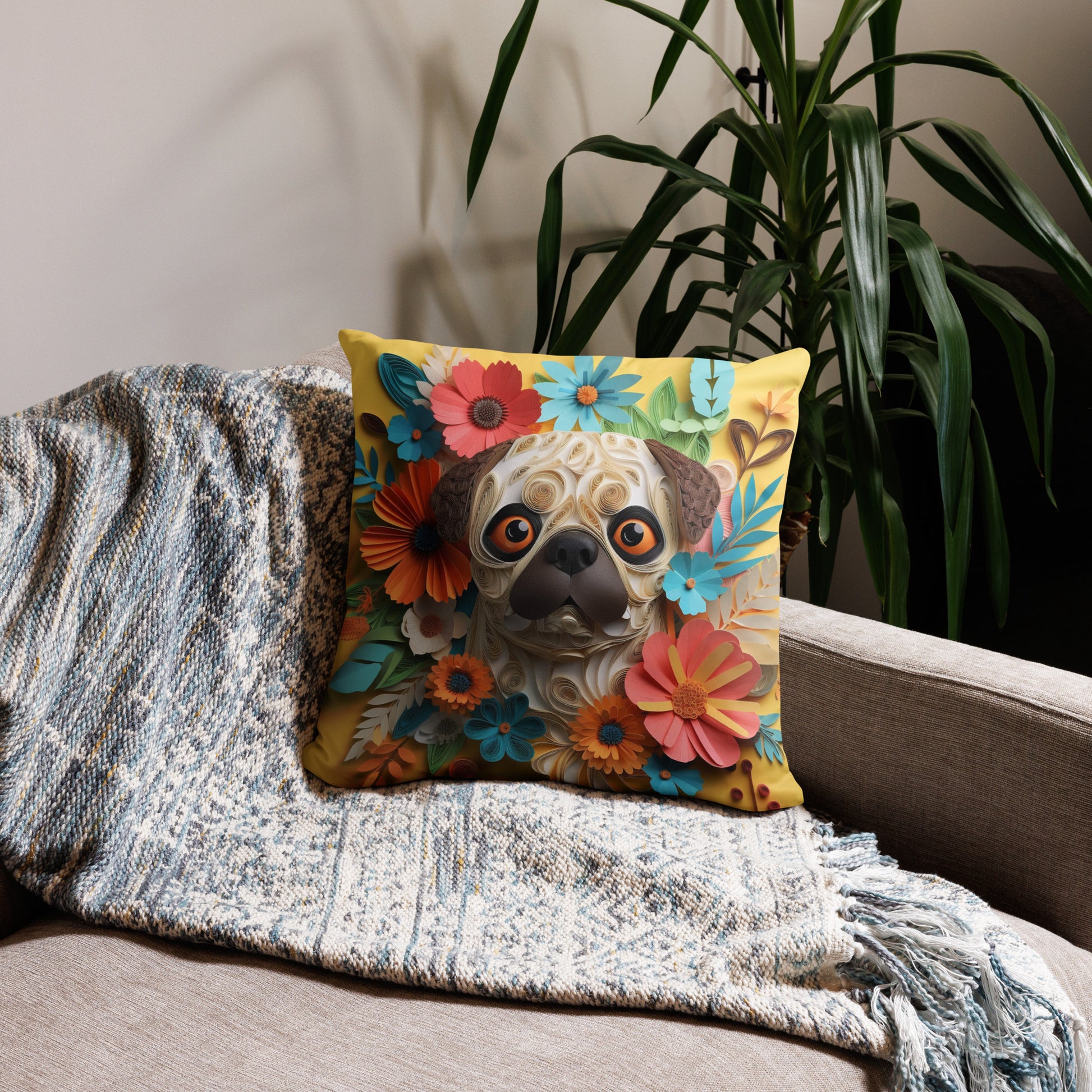 Pug Flowers Dog Lovers Throw Pillow are printed in USA