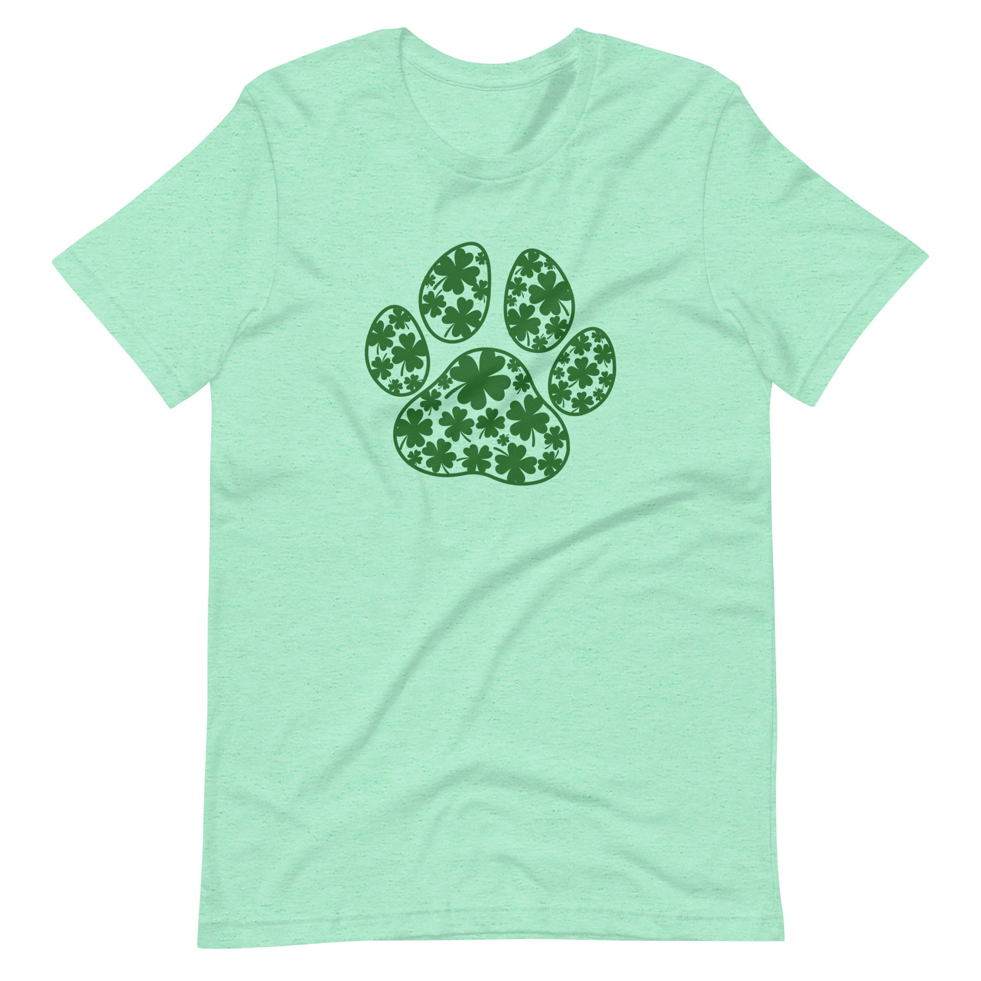 Shamrock Dog Paw Saint Patrick's Day Unisex t-shirts are printed in USA