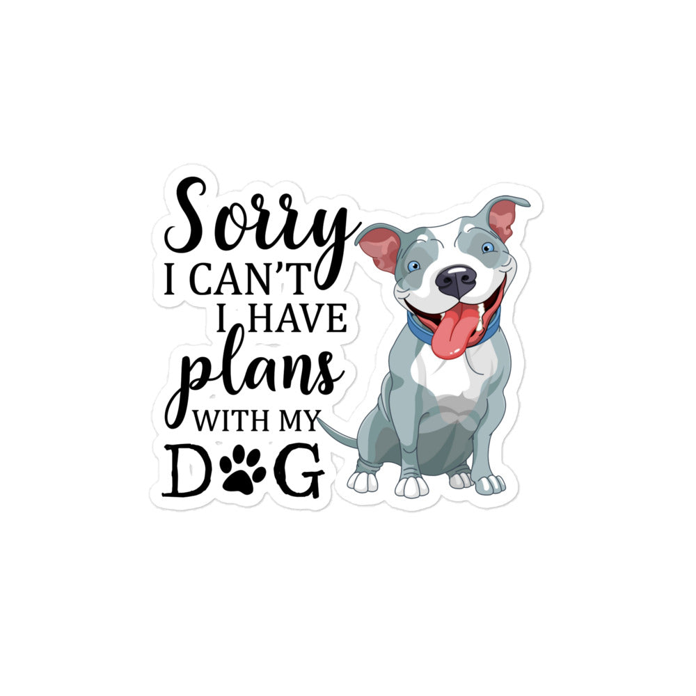 Sorry I Can't I Have Plans with My Dog Bubble-free stickers are printed in USA