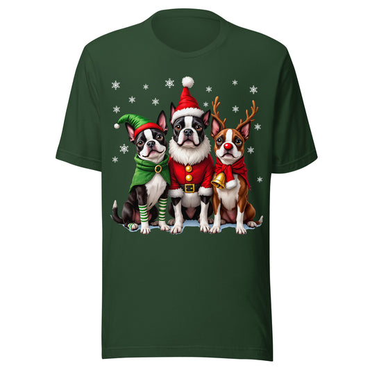 Boston Terrier Christmas Dogs Funny Santa Reindeer Elf T-Shirt