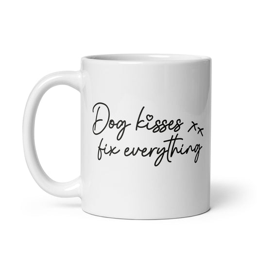 Dog Kisses Fix Everything White glossy Coffee Mug